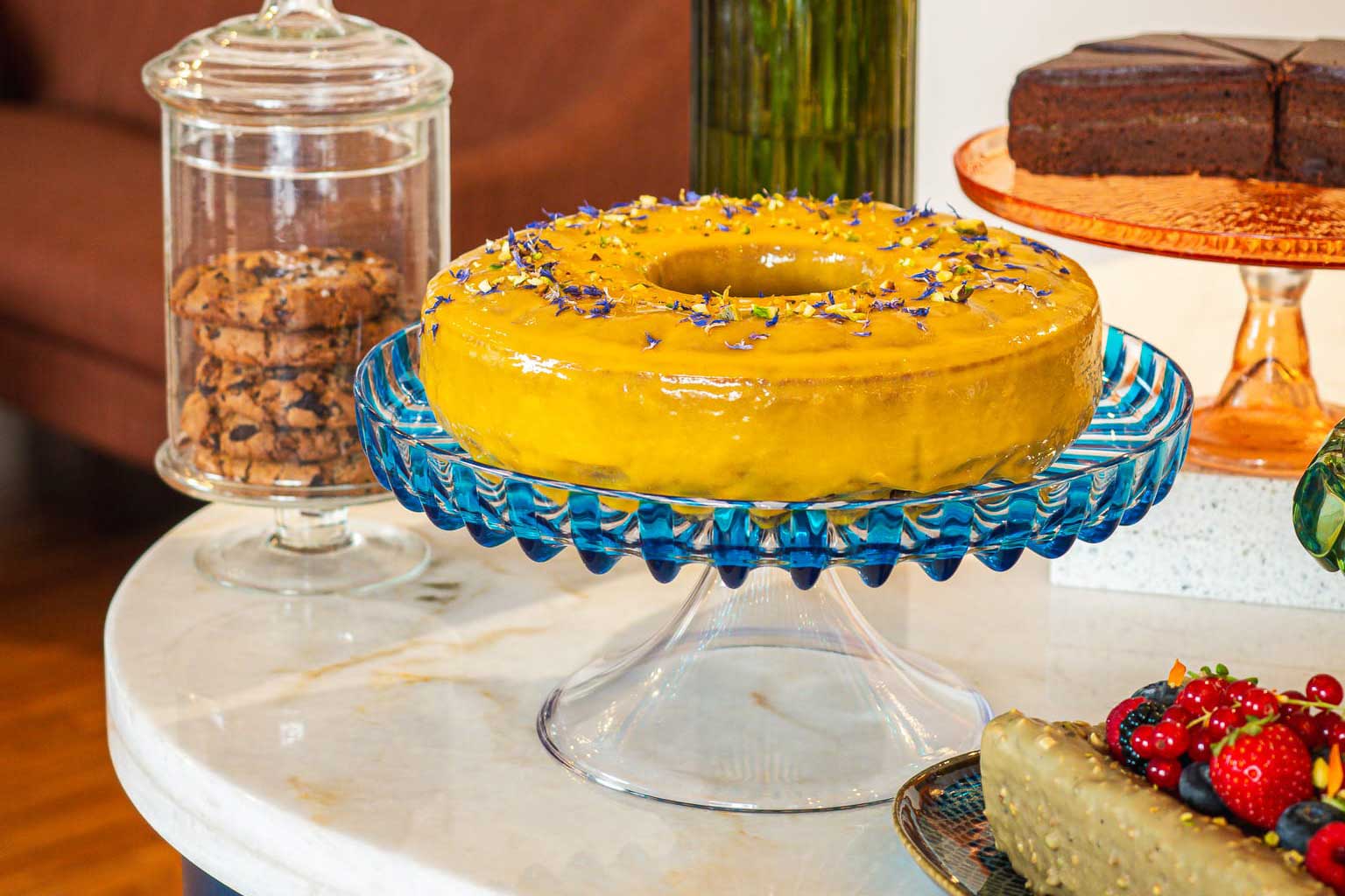 homemade quinoa muffin, beetroot marinated salmon, cream cheese, egg 62, avocado hollandaise