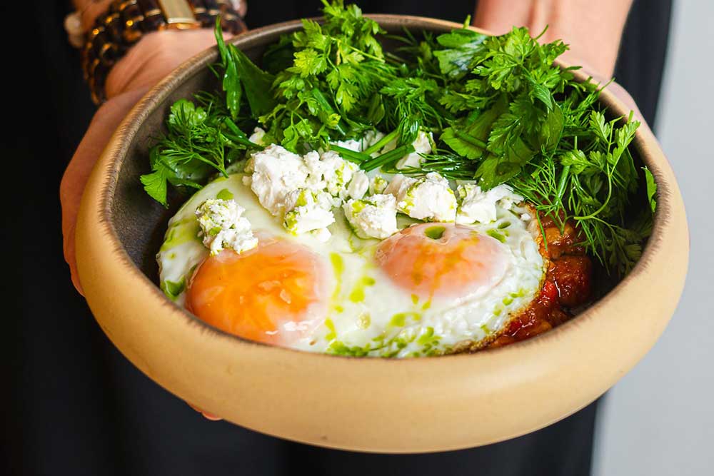 Citrus and mint yoghurt chilli paprika beurre noisette, herbs salad
