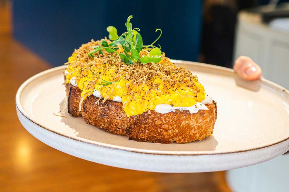 scrambled eggs, fresh black truffle, cream cheese, sourdough bread